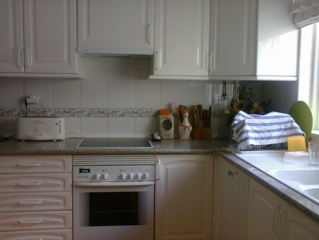 Lovely three bedroom apartment situated within a walled complex, within easy walking distance of shops, bars and restaurants. The marina is also within a 15 minute walk. The house has its own parking space and it has 2 floors. On the ground floor, it comprises of entrance hall, fully equipped kitchen, lounge /dining room with patio doors opening into the south facing terrace and private garden, with BBQ. A double bedroom with fitted wardrobes and a balcony is located in an elevated area of the ground floor. A wooden staircase leads up to the first floor with a bathroom, the master bedroom and a twin room. Both rooms have patio doors opening onto a south facing terrace.