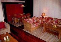 The first floor apartment is spacious, light and modern with a great decked terrace overlooking the golf courses. it comprises of a large lounge and dining area with cable TV, full picture patio doors leading to a large decked terrace of 6mx4m overlooking the golf courses and garden. It has an open fire and it is full air conditioning throughout; the two double bedrooms with ensuite bathrooms with showers and patio doors opening onto their own terrace have panoramic views of the golf courses; the kitchen is fully equipped with fridge / freezer, dishwasher, microwave and washing machine/drier, etc.