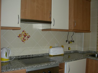 The apartment is nicely furnished and comprises of entrance hall, shower room, twin bedroom with patio door opening onto the terrace; double bedroom with ensuite bathroom (bidet and hydro massage bath also with shower, built-in wardrobe and French window opening onto a balcony; the fully equipped kitchen, with hob, oven, fridge / freezer, kettle, toaster and washing machine and dishwasher; the lounge / dining room which seats 8 people has a sofa bed,TV, DVD and a patio doors that open onto the easternly facing terrace. The complex has landscaped garden, a large communal swimming pool with a waterfall and a Jacuzzi and a children’s paddling pool. The linen and twice a week maid service is included. We change the towels mid week stay and all the linen at the end of the week stay. A £100 refundable breakage deposit is required with your final payment. This will be refunded to you after you vacate the accommodation, provided it is in good order. Should you or any member of your party be responsible for any breakages, loss or damage any item of the property or additional cleaning is necessary, a charge will be deducted from your security deposit. GPS coordinates available on request. Welcome drinks wait for you on your arrival. A detailed information book and a map of the area at the apartment. Babysitting service available. Airport transfers, car hire and foodpacks arranged on request.
