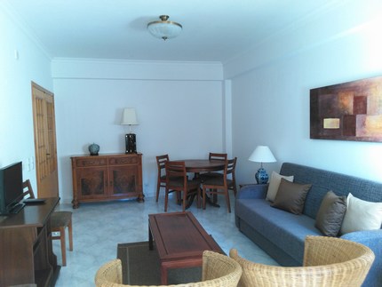 This spacious, well equipped and furnished apartment is well located in the heart of Vilamoura. Within walking distance, approximately 10 minutes of the Marina, beaches, shops, restaurants and bars this is the ideal base for a peaceful holiday. The apartment is situated on the first floor of a modern and nice condominium.It has a children paddling pool and a large communal pool, which are set in beautifully, landscaped and maintained gardens. The accommodation comprises of a double bedroom with ensuite bathroom, bathroom, well equipped kitchen with fridge freezer, gas hob, microwave, washing machine, kettle, etc., spacious living/dining room with TV, and sofa bed. Nice terrace area with patio furniture, ideal for your meals al-fresco.